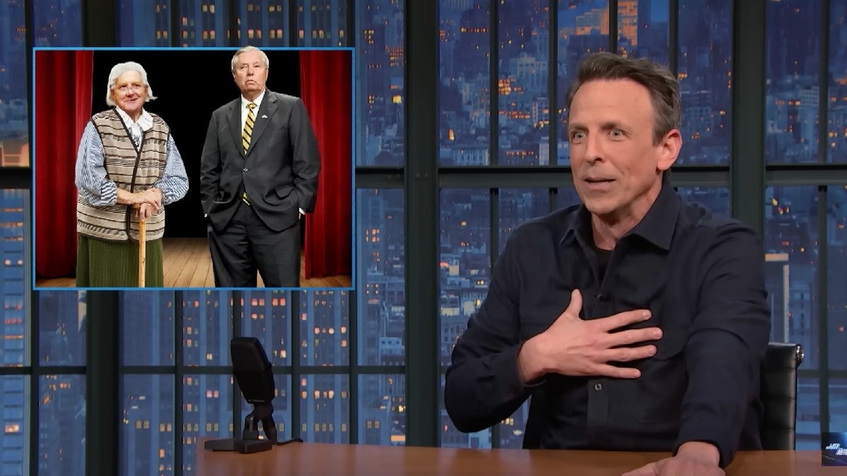 “Bem, senhor, não acreditamos em uma palavra do que você acabou de dizer, mas gostaríamos de convidá-lo para um acampamento de teatro, porque você seria perfeito para interpretar o papel de MeeMaw de Lindsey Graham”, brincou Meyers, iniciando uma cena hipotética entre os dois.