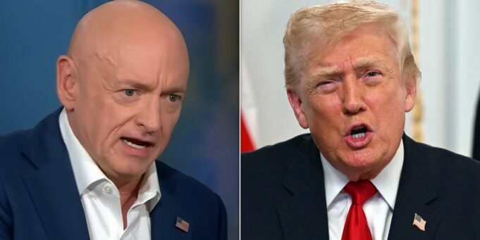 O senador Mark Kelly e o presidente Trump estão atualmente envolvidos numa disputa separada depois de Kelly e cinco outros legisladores democratas terem divulgado um vídeo dizendo aos soldados que tinham o direito de recusar ordens ilegais. Trump condenou o vídeo, chamando os legisladores de “traidores” e pedindo que fossem processados por sedição. Getty Images/YouTube.