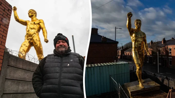 Uma alta estátua dourada removida após reclamações sobre sua nudez retornou surpresa em Wigan após uma ausência de três anos. O gladiador romano de 2,10 metros, apelidado de Serras Douradas pelos habitantes locais, foi deposto em 2022, quando o conselho ordenou a sua remoção, gerando petições e campanhas online exigindo a sua devolução. O dono da loja, Grant Adamson, trouxe de volta a estátua do lado de fora da Bulldog Forge para a temporada de férias, dizendo que queria levantar o ânimo e proporcionar um pouco de diversão à comunidade. Os residentes celebraram o seu regresso com piadas e aplausos, e o município diz que está a analisar se é necessária uma nova licença para a exposição de curta duração.